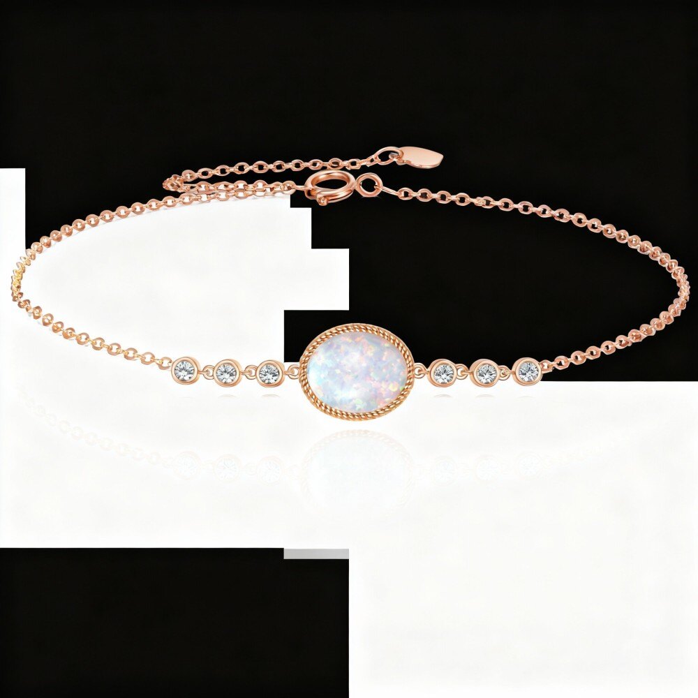 Nossa impressionante pulseira em Rosa Ouro 14K é uma adição essencial a qualquer coleção de joias, meticulosamente projetada para mulheres que apreciam luxo e elegância. Apresentando uma cativante opala em formato oval no centro, esta pulseira é lindamente adornada com zircônias cúbicas cintilantes, que realçam seu brilho e charme. O luxuoso acabamento em Rosa Ouro 14K não apenas adiciona beleza, mas também garante durabilidade, tornando-a adequada tanto para uso diário quanto para ocasiões especiais. Quer você esteja se vestindo para um evento formal ou adicionando um toque de elegância ao seu traje casual, esta pulseira é o acessório perfeito. Sua combinação única de materiais de alta qualidade e artesanato requintado faz dela um presente ideal para você ou para alguém especial. Faça uma declaração com esta peça atemporal que incorpora sofisticação e encanto em cada detalhe.