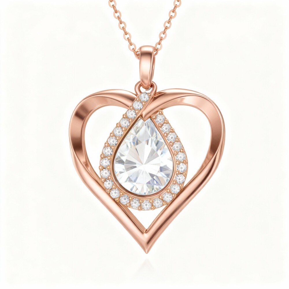 Descubra nosso requintado colar de pingente de Rosa Ouro 10K que apresenta um coração e um símbolo do infinito, adornado com brilhantes zircônias para um acessório elegante e atemporal.
