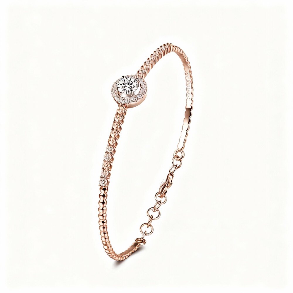 Descubra a elegância de nossa pulseira de Rosa Ouro 10K com Moissanite, apresentando um design deslumbrante que eleva qualquer roupa com facilidade.