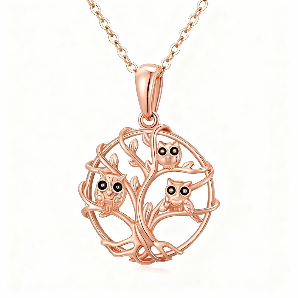 Este deslumbrante colar pendente de Rosa Ouro 10K apresenta uma bela coruja em uma Árvore da Vida, fundindo elegância com um design significativo.