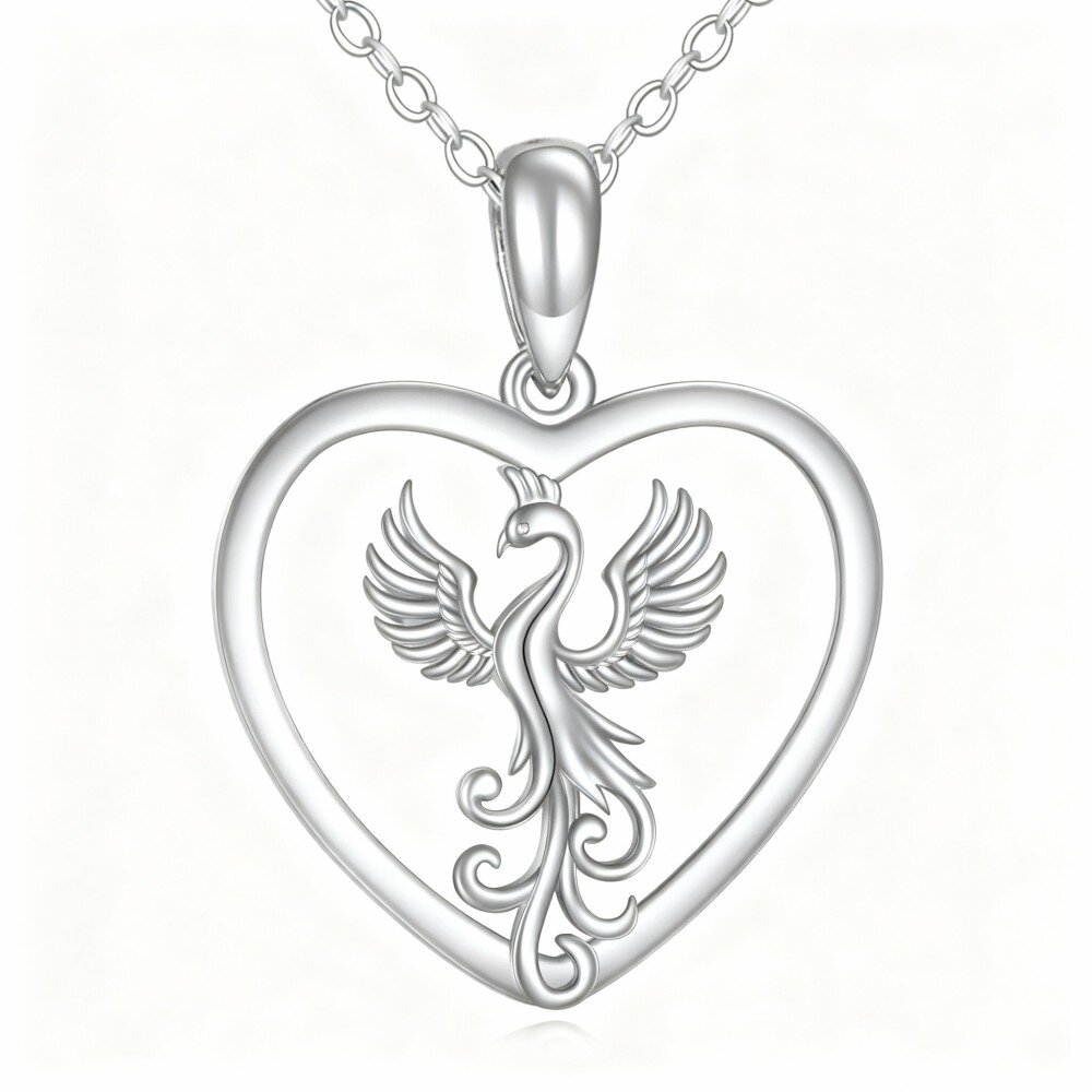 Descubra a beleza do nosso deslumbrante colar de coração e fênix em Ouro Branco 10K, projetado para mulheres que valorizam elegância e simbolismo.