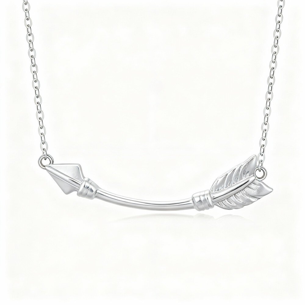 Experimente a elegância do nosso colar pendente de flecha em Ouro Branco 10K, projetado para mulheres que admiram a beleza minimalista e a sofisticação.