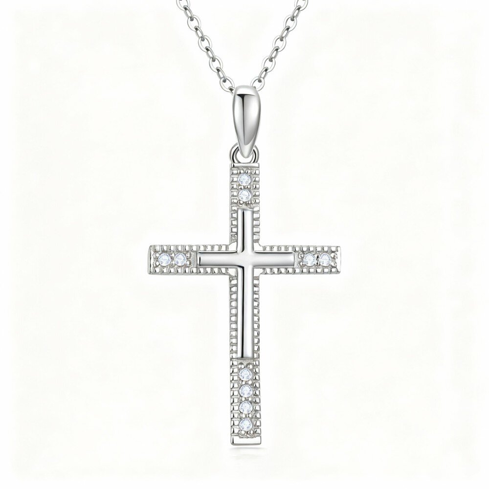Descubra nosso elegante colar com pingente cruz de 10K Ouro Branco, lindamente embelezado com zirconia cúbica cintilante, perfeito para adicionar um toque de graça a qualquer roupa.