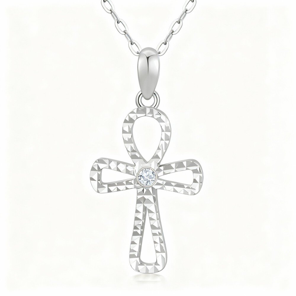 Descubra a elegância do nosso Ouro Branco 10K Colar com pendente, adornado com um deslumbrante Zircônia cúbica Cruz concebida exclusivamente para mulheres.