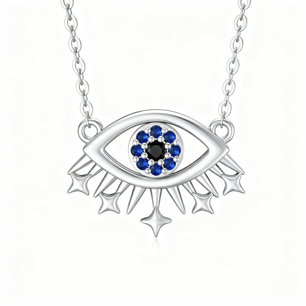 Descubra o charme do nosso colar pendente Evil Eye em Ouro Branco 10K, adornado com zircônias radiantes para uma peça elegante.