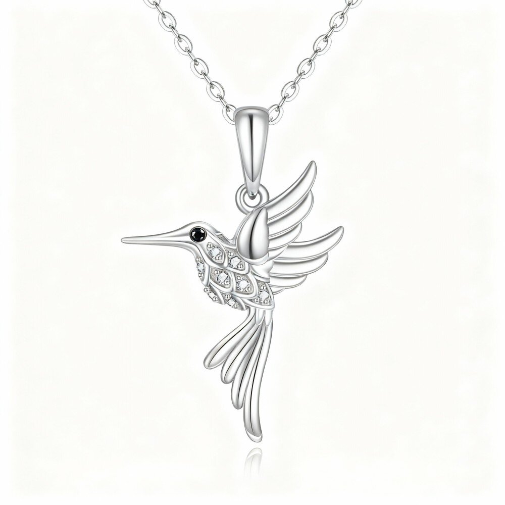Eleve seu estilo com nosso deslumbrante Colar de Ouro Branco 10K, que apresenta um delicado beija-flor adornado com brilhantes Zircônias.