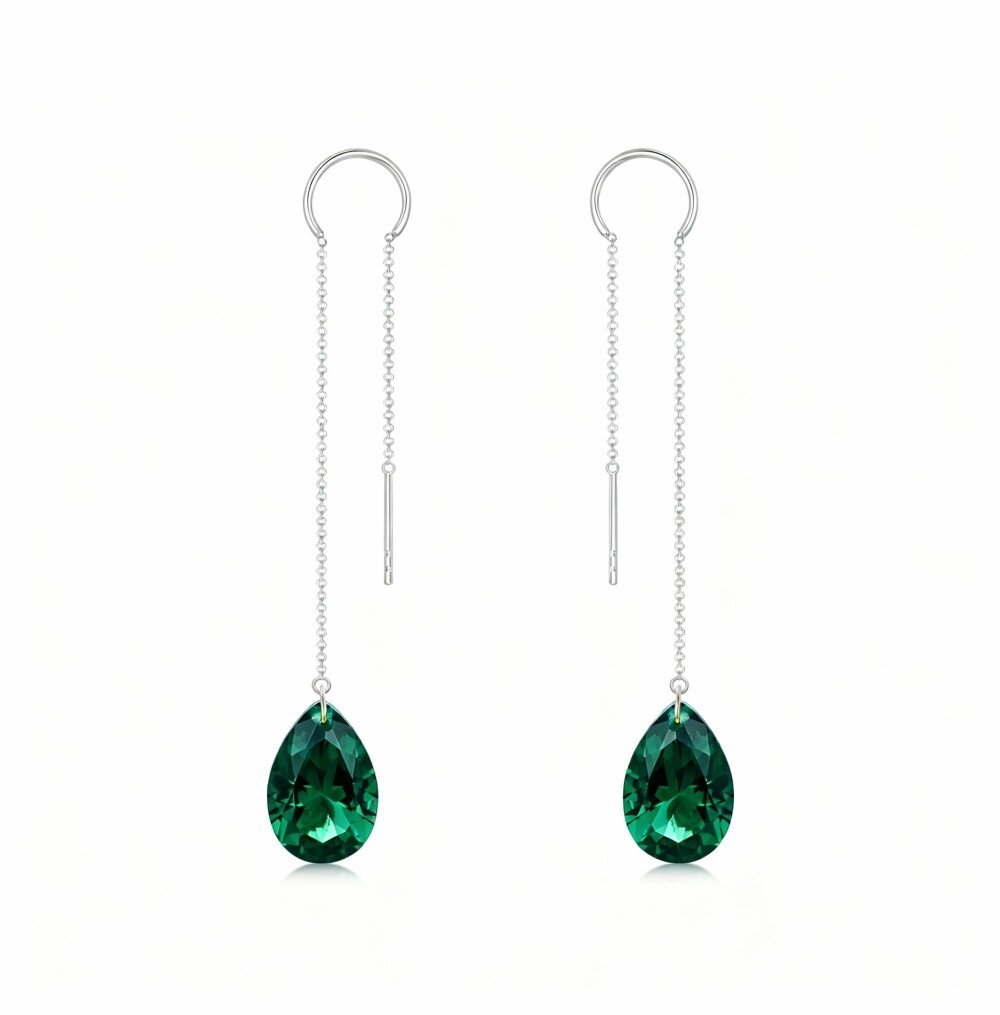 Eleve seu estilo com nossos requintados brincos pendentes de Ouro Branco 10K, com deslumbrantes pedras preciosas de esmeralda que complementam lindamente o formato de gota, oferecendo um toque luxuoso a qualquer roupa para mulheres que apreciam elegância atemporal.