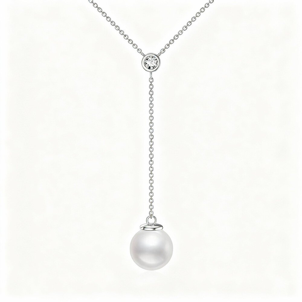 Explore o auge da sofisticação com nosso colar Y em Ouro Branco 10K, adornado com Moissanite brilhante e pérolas atemporais, ideal para mulheres exigentes.
