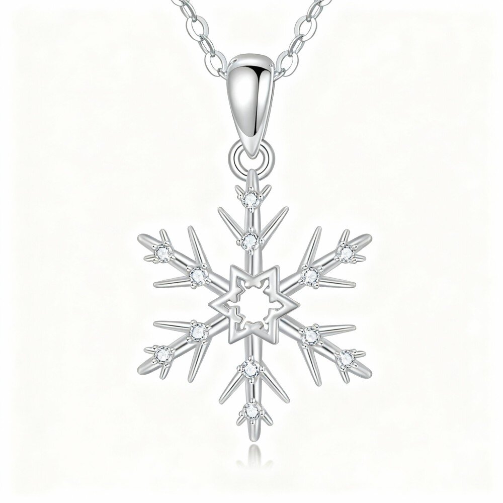 Descubra nosso impressionante colar com pingente de floco de neve em Ouro Branco 10K, uma perfeita fusão de elegância e brilho projetado para a mulher moderna.