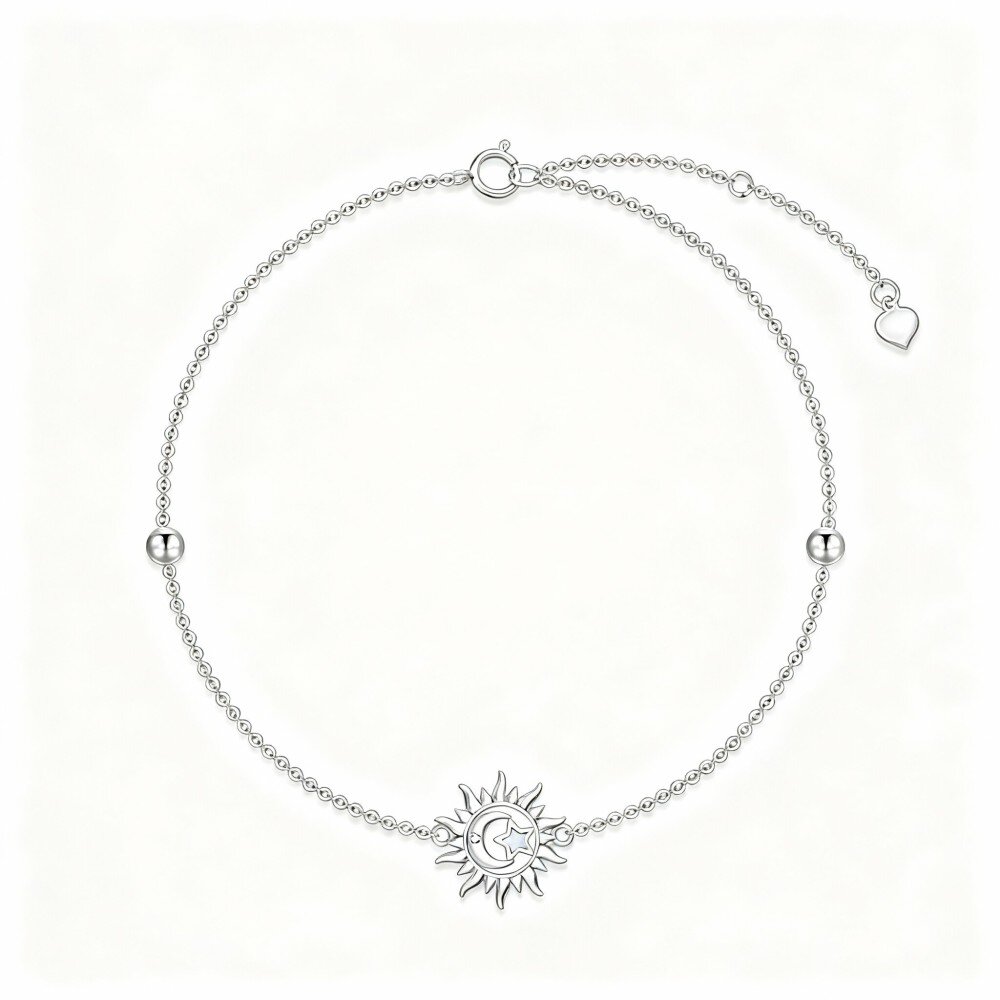 Descubra nossa deslumbrante pulseira de charm em Ouro Branco 10K, com um design circular adornado com diamantes e opala, incorporando a beleza celestial da lua e do sol.