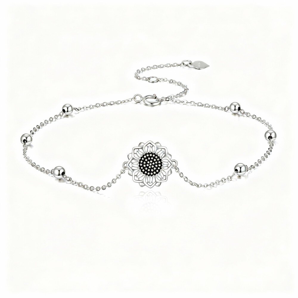 Eleve seu estilo com nossa impressionante pulseira de charme de Ouro Branco 10K, apresentando um encantador design de girassol que incorpora a beleza da natureza.