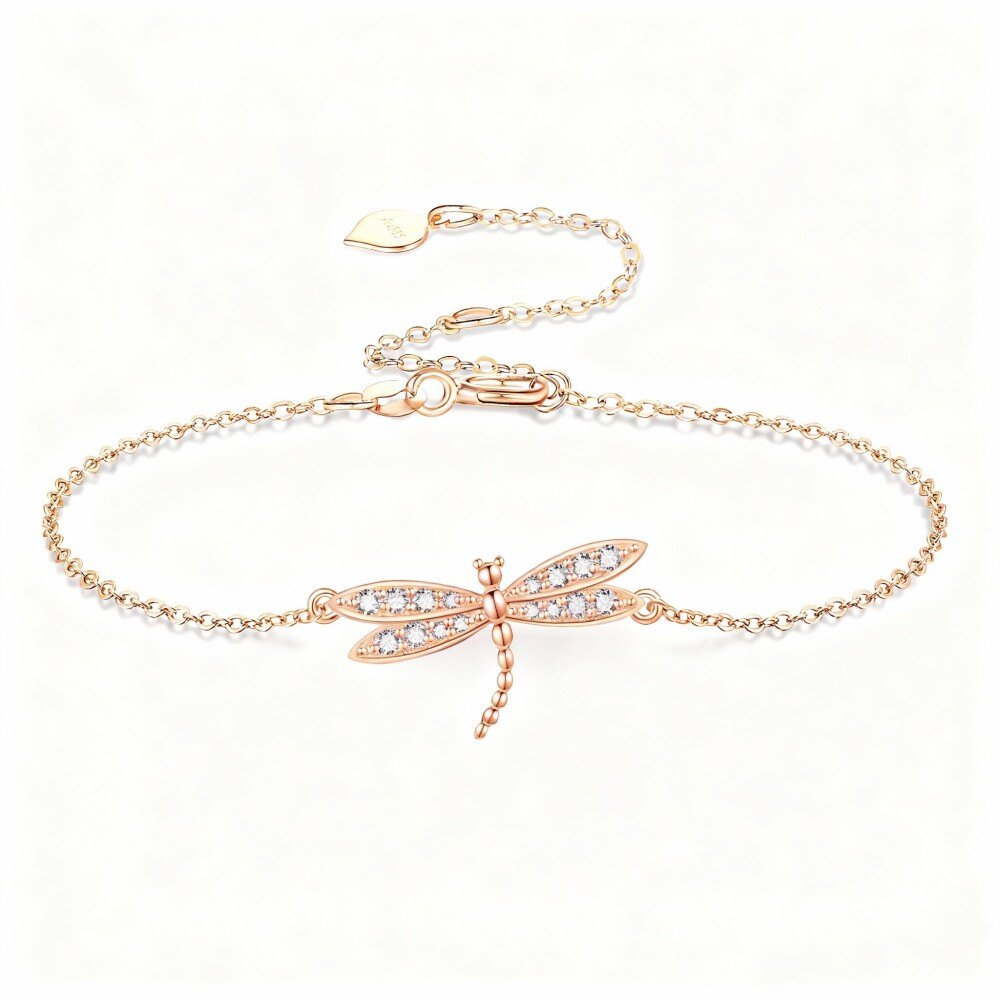 Feita em Rosa Ouro 14K de alta qualidade, esta pulseira com pingente exibe uma libélula delicadamente desenhada, simbolizando transformação e alegria. As deslumbrantes pedras de zircônia cúbica são meticulosamente definidas para capturar a luz, adicionando um toque radiante à sua roupa. Ajustável e confortável, esta pulseira é adequada para uso diário ou eventos especiais, permitindo que você expresse seu estilo único. Seja para vestir-se formalmente ou informalmente, esta peça aprimora qualquer visual sem esforço, tornando-a uma adição essencial à sua coleção de joias.