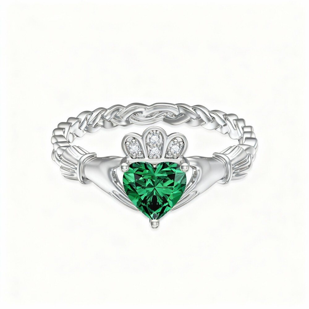 Experimente a elegância intemporal com o nosso encantador anel de coração em Ouro Branco de 14K, concebido para mulheres que apreciam ligações significativas. Adornado com um cristal verde hipnotizante, esta peça requintada simboliza o amor e a união com o seu design único de mãos dadas.