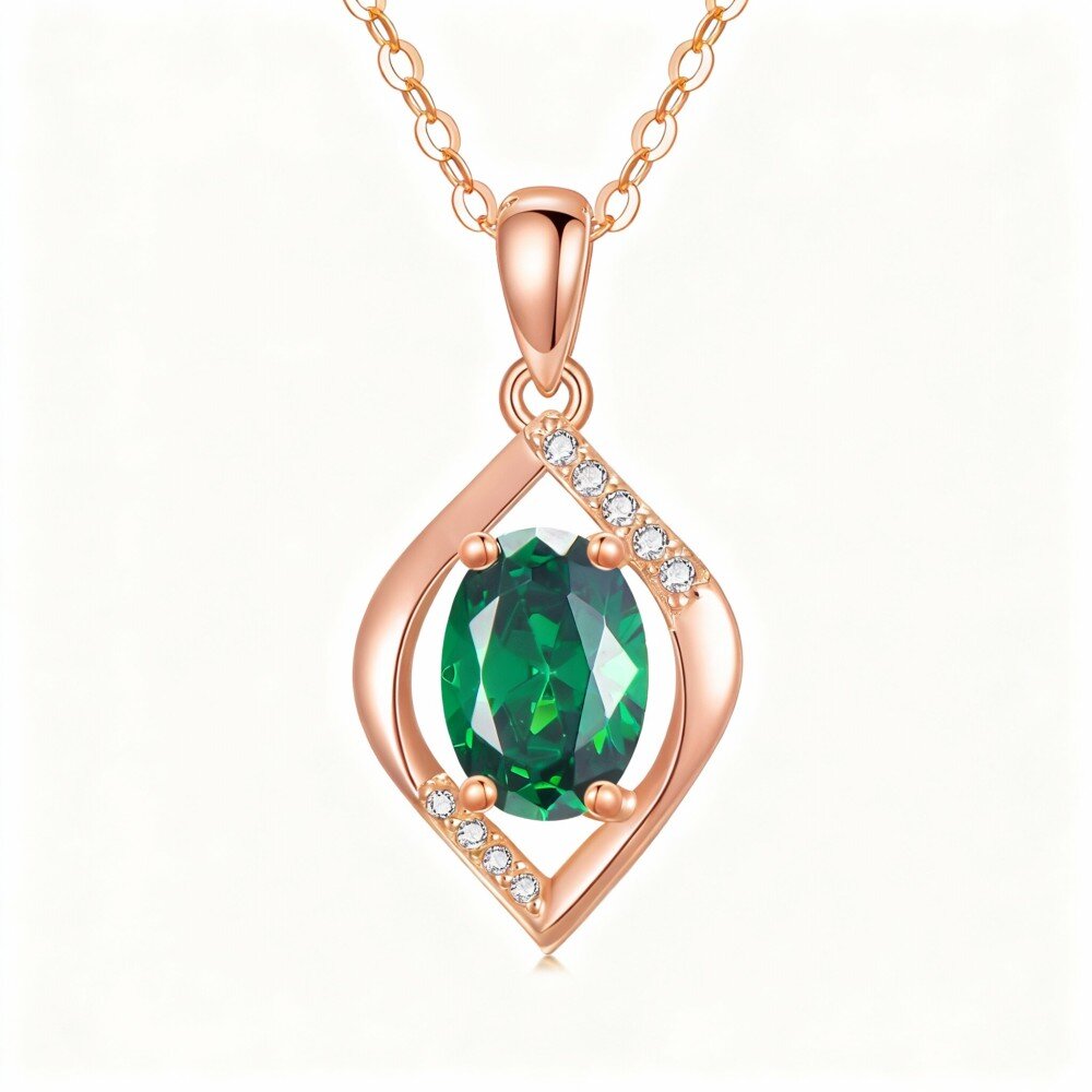 Descubra a beleza atemporal com nosso colar de pendente em Rosa Ouro 18K que apresenta uma pedra preciosa de tanzanita verde em forma oval.