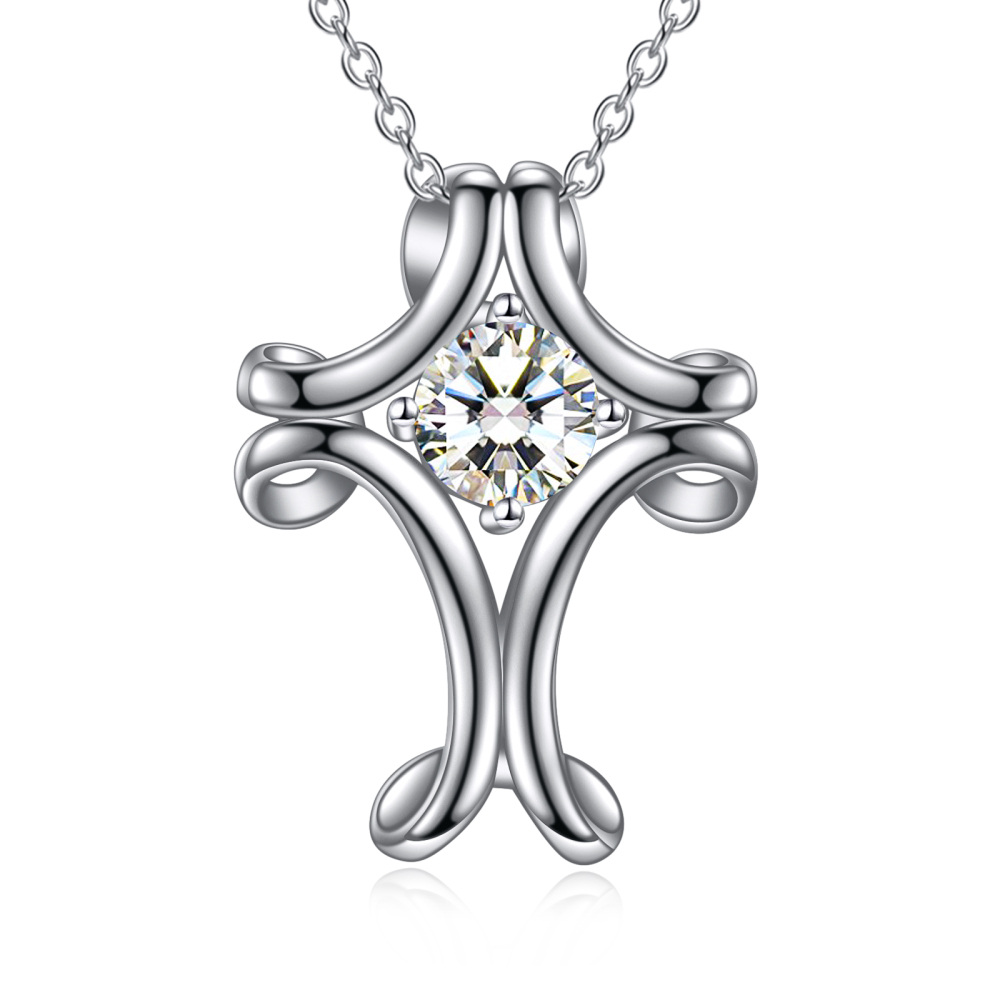 Descubra o fascínio da elegância intemporal com o nosso Colar Pendente em Prata de Lei, com uma combinação deslumbrante de Zircónias Cúbicas transparentes num design de Cruz com Nó Celta, perfeito para mulheres que apreciam tanto o estilo retro como o moderno.