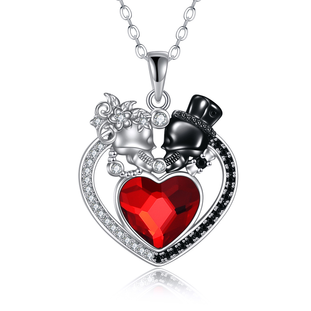 Descubra o nosso deslumbrante colar de pingente unissexo feito de prata esterlina, com um design único de coração e caveira adornado com zircónias cúbicas cristalinas em tons de prata e preto.
