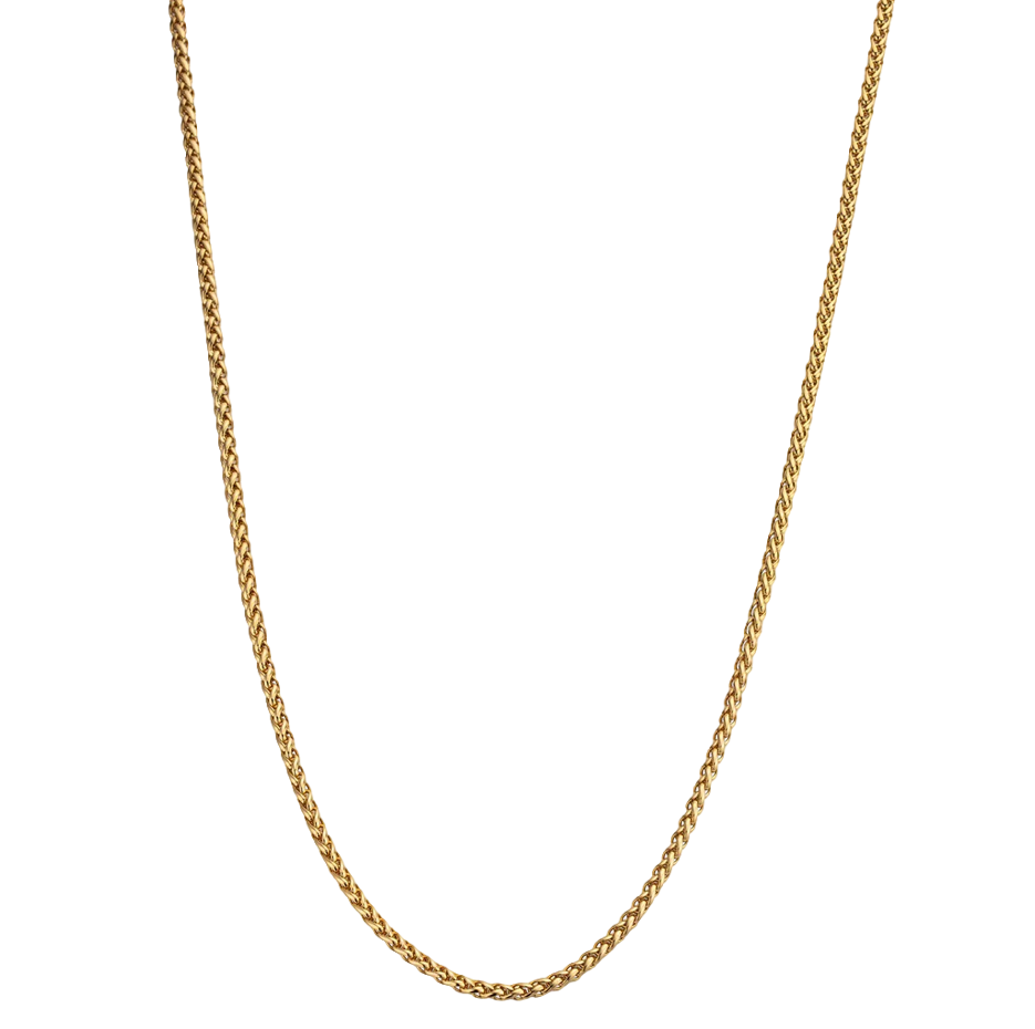Eleve os seus acessórios com o nosso requintado colar Wheat Chain, meticulosamente fabricado em prata de lei de alta qualidade e luxuosamente banhado a ouro amarelo.